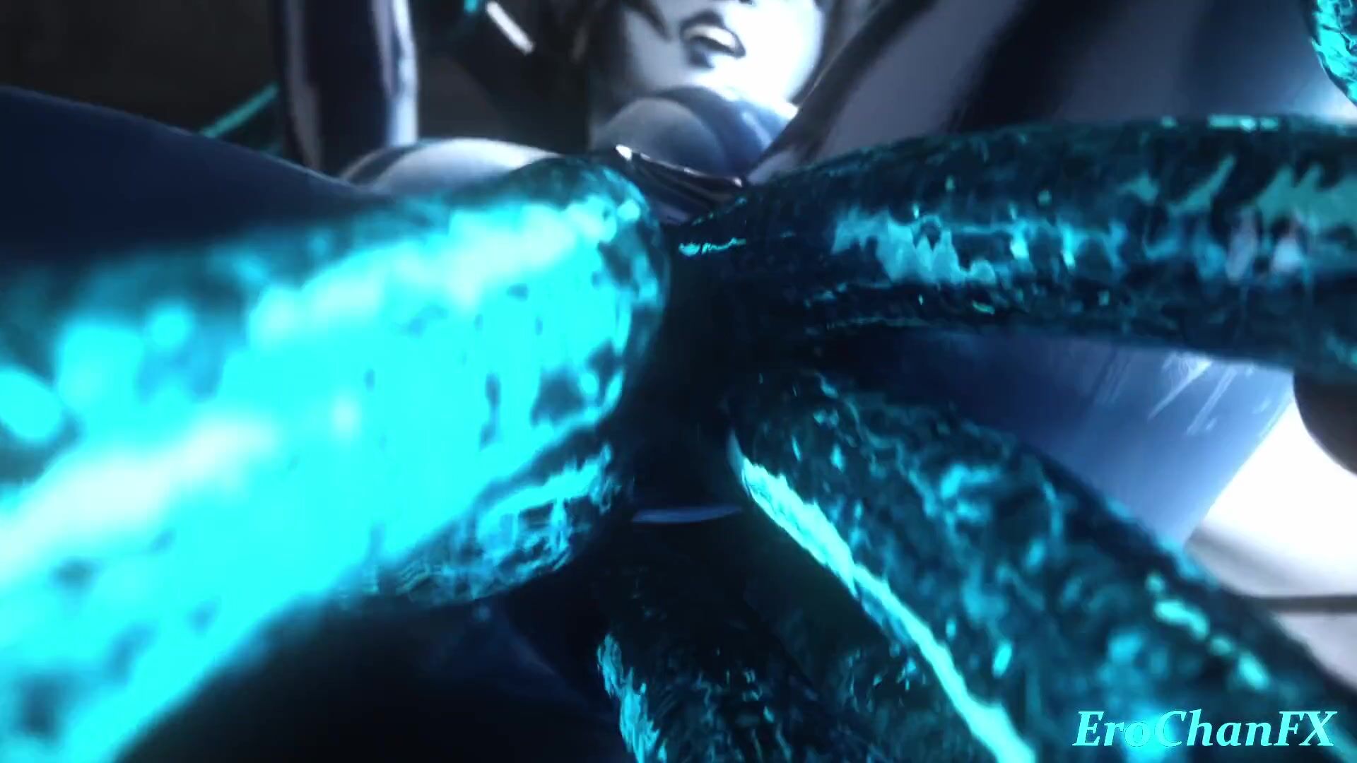 Cortana gets her pussy stretched wide open by 4 slimy rods