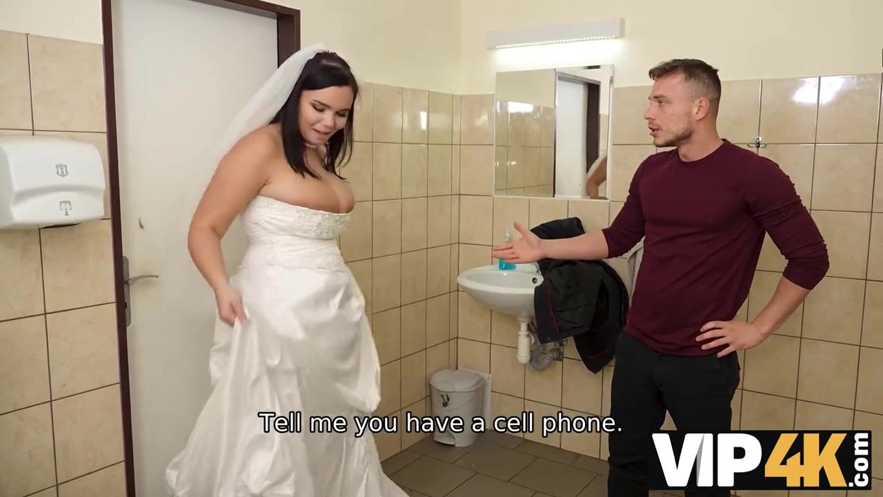 VIP4K. Being locked in the bathroom, sexy bride doesnt lose time and seduces random guy