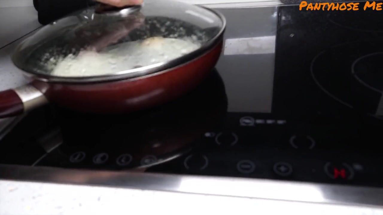 Milf cooks breakfast in pantyhose and gets rewarded with big black cock