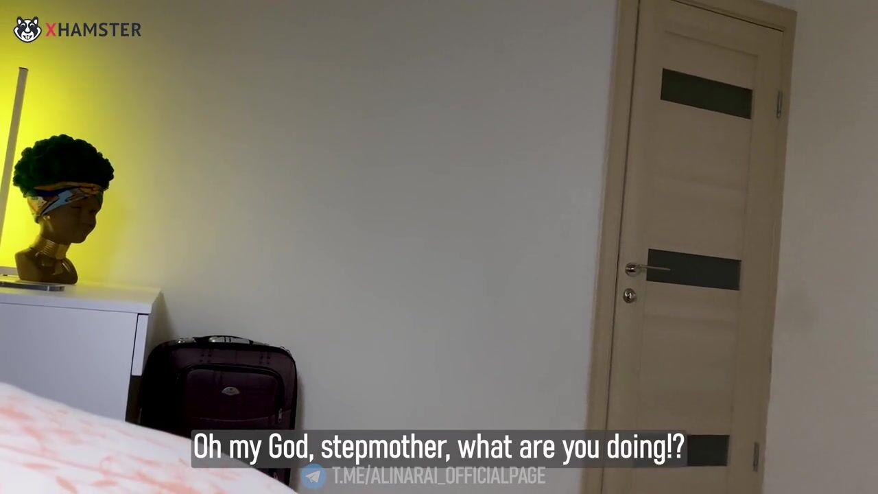 Stepmom and stepson share a bed in a hotel room