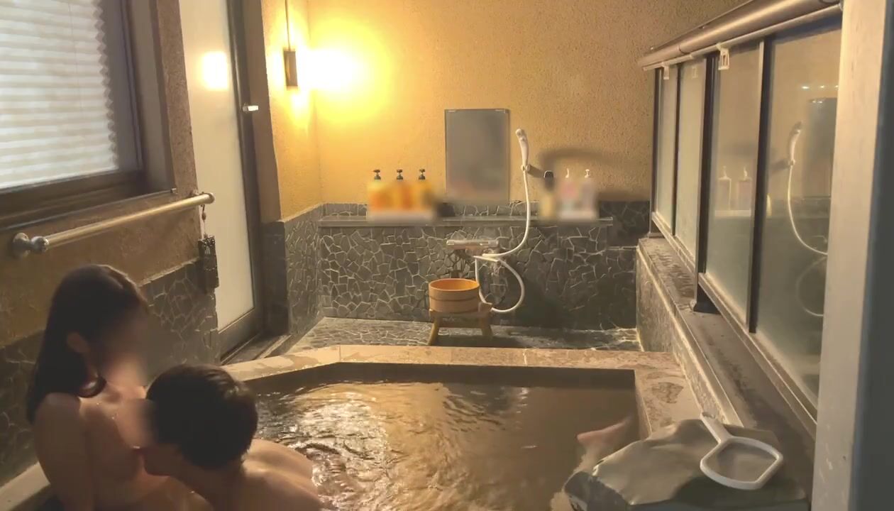 First hot spring trip♡SEX in a stylish open-air bath at night♡Japanese amateur hentai