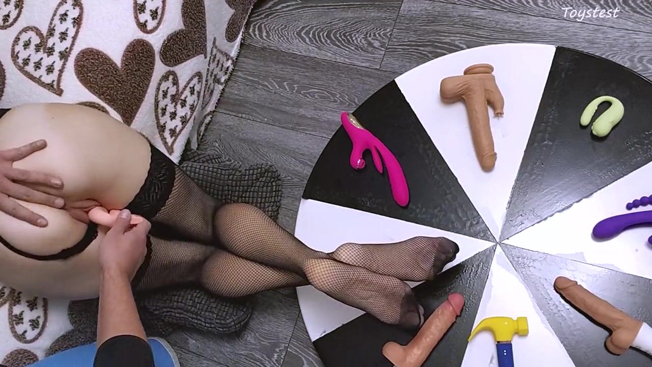Petite Wife Testing Toys using Wheel Of Dildos